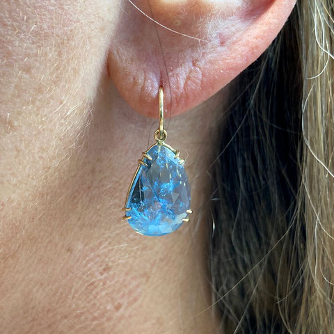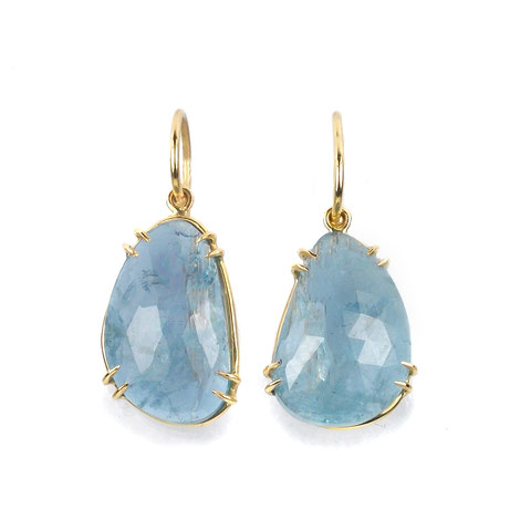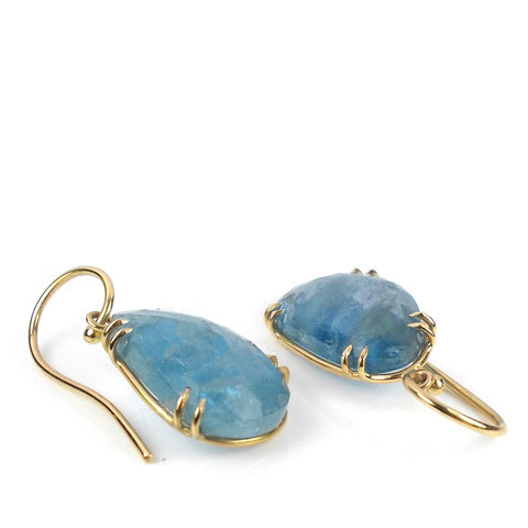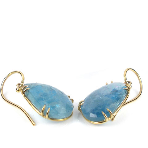 Funkelnagelneu: Unsere atemberaubenden Ohrhänger in Gelbgold 750/000 mit 18 mm großen Aquamarinen im Rosenschliff, zusammen 16.68 ct., € 2.398,00/Paar.