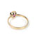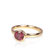 Der Ring besteht aus einer gleichlaufenden und ca. 2.3 mm breiten Ringschiene, in die oben die leicht konisch geformte Fassung für unseren Edelstein eingepaßt ist. Ein schönes Detail ist das kleine Herz unter dem roten Edelstein in der Fassung.