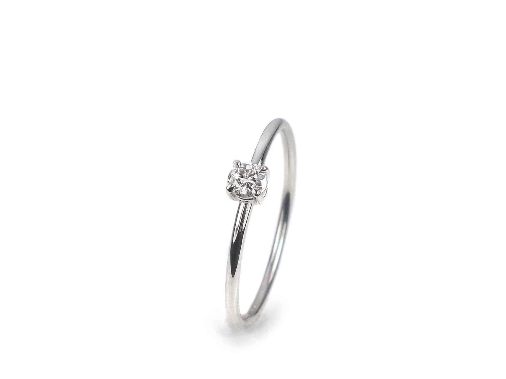 Prinzessinnen-Ring: Feiner und edler Ring in poliertem Weißgold 585/000 mit einem weißen Vollschliff-Brillanten von 0.12 ct. in der Qualität SI1.